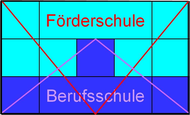 Schon im 9. Schuljahr, dem Abschlussjahr, findet der Unterricht der Schülerinnen und Schüler der beiden Förderschulen an einem Unterrichtstag in den Klassenräumen und Werkstätten der Berufsschule statt. An diesem "Berufsschultag" unterrichten vormittags die gewohnten Lehrerinnen und Lehrer der Förderschulen, die dabei den berufspraktischen Unterricht am Nachmittag vorbereiten, der von den Lehrerinnen und Lehrern der Berufsschule erteilt wird.